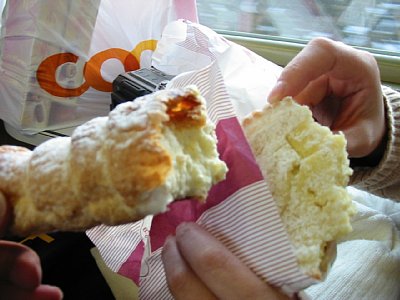 駅前の通りで買ったパンを食しました。クリームたっぷりおいしいです。