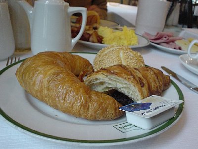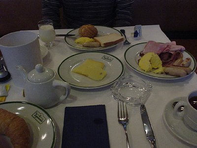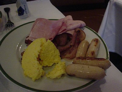 ↑朝食です。ハムやウィンナー中心のバイキングです。おいしかったので食べまくりました。